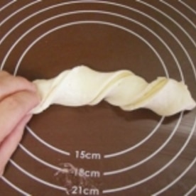 生地がなじんだところで3回ねじり、二次発酵させます。