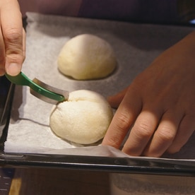 一次発酵終了後、40gずつに分割し、軽くまとめ、ベンチタイムを10~15分ほどおきます。