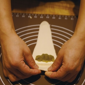 うぐいすあんを15g、「3」のバターを真ん中にのせます。