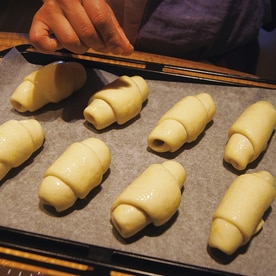 生地を4分割し、10~15分ほどのベンチタイムをおきます。