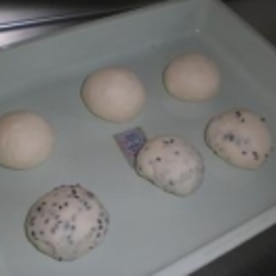 生地に黒ごまを混ぜ込み、6分割して、15分やすませます。