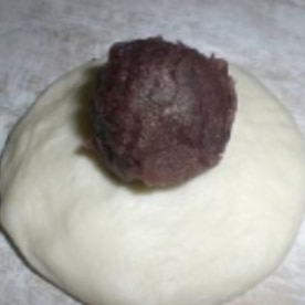 粒あんを入れしっかり閉じ、丸く形を整えます。