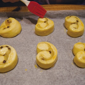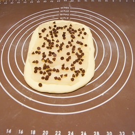 全面に夏みかんあんをぬり、全体にチョコチップを散らします。