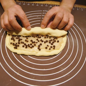 長辺の両サイドから半分ずつ軽く中心に向かって巻き上げていきます。