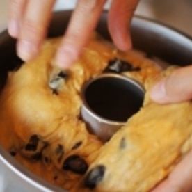 ショートニングをぬったクグロフ型に生地をすっぽりと入れます。