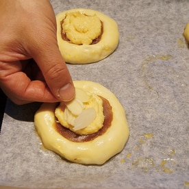 アーモンドスライスをのせ、オーブン200度で15分焼成します。
