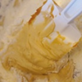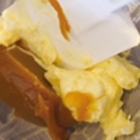 バターをキャラメルミルクあんをよく混ぜ合わせ、クリーム状にします。