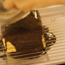 - 湯煎でとかしたパータグラッセを上から流し、デコレーションします。
