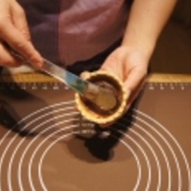 タルトカップに深煎り珈琲あん25gと「4」のクレームダマンドを入れます。
