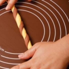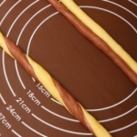 2分割し、ひとつにココアパウダー、もうひとつにかぼちゃパウダーを練り込み、それぞれを二次発酵させます。