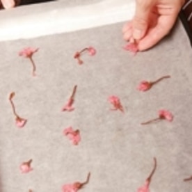 塩漬けの桜花は水洗いし、塩を落としておきます。