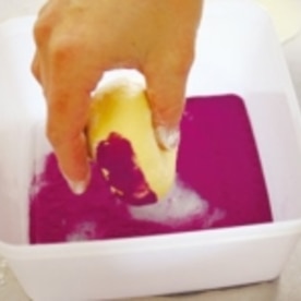二次発酵終了後、側面に紫いもパウダーをまんべんなくつけます。