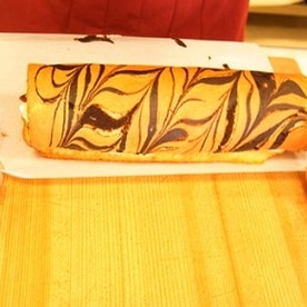 【A】インスタントコーヒーを溶き、型にマーブル状に流します。