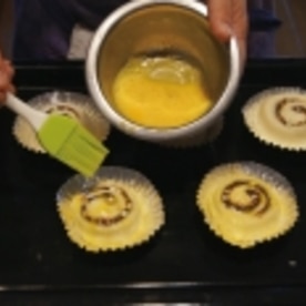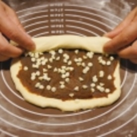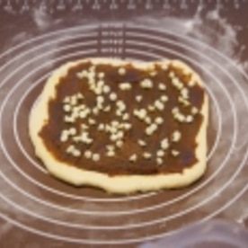 深煎り珈琲あんを全体に塗り、上にホワイトチョコをちらします。