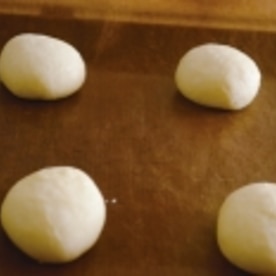 一次発酵した生地を分割し、丸めます。ベンチタイムを10分ほどおきます。