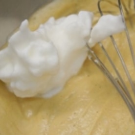 ※メレンゲを混ぜるときは泡をつぶさないようさっくりと。