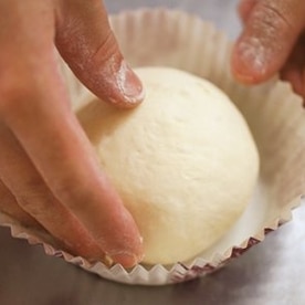 とじ目を下にカップにのせて35度で60分二次発酵させます。