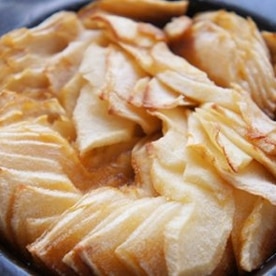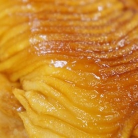 パイ生地の上に、キャラメルにひたったりんごのきれいな面が上になるようにのせます。