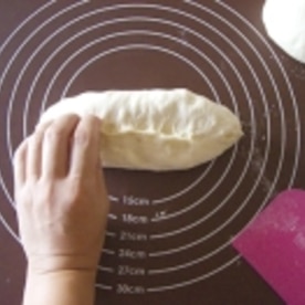 発酵終了後、分割し軽く丸めなおしてベンチタイムを15分ほどおきます。
