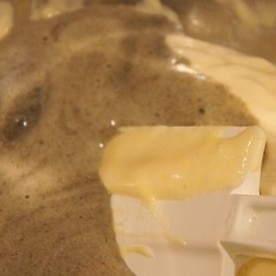 焙煎黒ごまあんと豆乳を混ぜて柔らかくします。