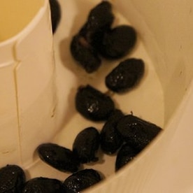 シフォン型の底に黒豆鹿の子を敷きつめます。