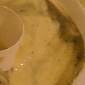 プレーン生地「7」をその上に流し入れ、さらに黒ゴマ生地「6」を流し入れます。