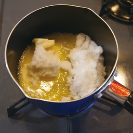 発酵させている間に、【B】の材料を軽く煮詰めてキャラメルソースを作ります。