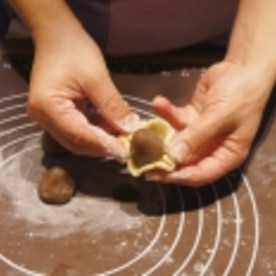 和栗あん渋皮入り(渋皮マロンあんも可)を15gずつに分け、立体的な栗の形にします。