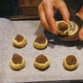 クッキー生地部分にけしの実をつけます。