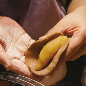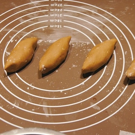 こんがり焼きいもあん25gずつをさつまいもの形にします。
