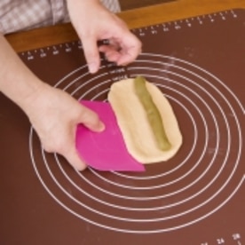 もう片側の生地をあんの上にかぶせ、軽く押さえて綴じます。