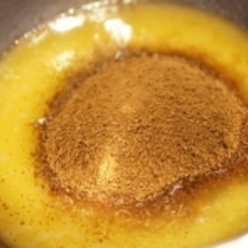 バターを湯煎でとかし黒糖を加え、よく混ぜます。卵をさらに加えて混ぜます。