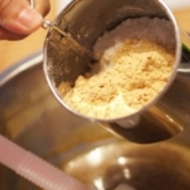 ふるった薄力粉ときな粉をさらに加え軽く混ぜます。