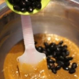 黒豆鹿の子を少し加えて生地をさっくり混ぜます。
