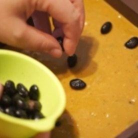 飾り用の黒豆鹿の子を少し上にのせます。